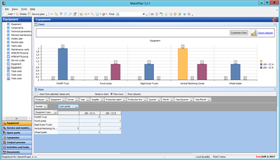 Based on the inserted work sheets, expenses per device can be calculated according to different criteria (time, supplier, type of repair, etc.).